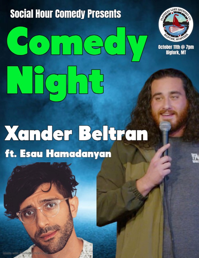The Social Hour Comedy Presents a night of entertainment in the Cellar at the Flathead Lake Brewing Co. Pubhouse on Saturday, October 11th, with headliner Xander Beltran, featuring Esau Hamadanyan.